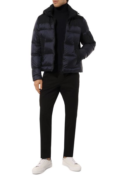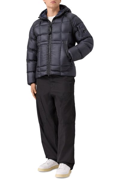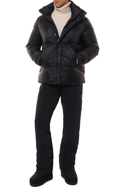 Стеганый пуховик с регулируемым капюшоном и высоким воротником выполнен из влагостойкого непродуваемого нейлона Pertex® Quantum. Модель с тремя внутренними и двумя внешними карманами утеплена утиным пухом. Манжеты регулируются брендированными ремешками с лентами велкро. Парка застегивается молнией, прикрытой штормовой планкой.