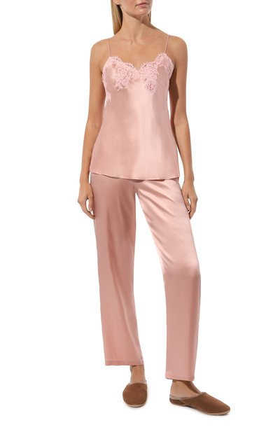 Для пошива полуприлегающего топа Kensington Mornings использовали джерси из микса модала, нейлона и хлопка. Модель с узкими регулируемыми бретелями украсили вставкой из цветочного кружева в тон.
