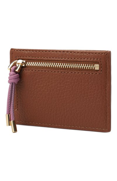 Картхолдер Allegra с двумя слотами и отделением для чеков выполнен из гладкой телячьей кожи Sydney. Аксессуар с вискозным подкладом украшен спереди крупной цветочной композицией и тисненым логотипом марки.