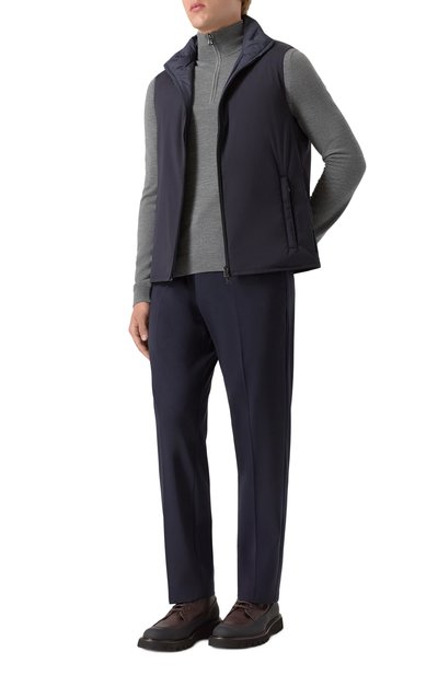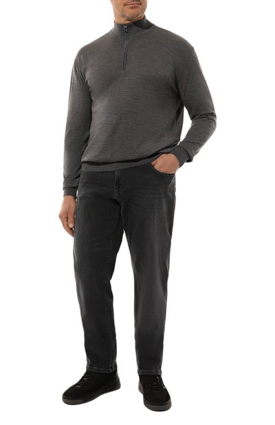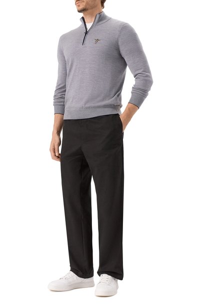 Джемпер Ouri выполнили из мериносовой шерсти первого пострига. Высокая горловина застегивается молнией с пуллером в виде литеры B. Фирменная символика повторяется слева над эластичным поясом.