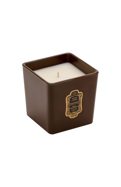 Интерьерная свеча, заключенная в элегантный квадратный стакан, вдохновлена традициями восточной парфюмерии. О магической атмосфере старинных дворцов и храмов напоминает благоухание янтарной амбры, поддержанное бархатным мускусом и сли вочным сандалом с полутонами дыма и бальзамных смол. Минерального воска (200 г) хватит на 40 часов непрерывного горения.