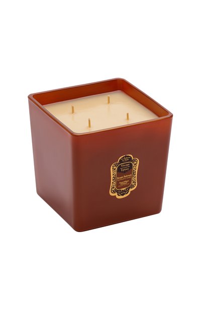 Жаркое пламя фитиля нагревает эфирные масла, смешанные с минеральным воском, наполняя пространство чувственным восточным ароматом. Переплетение янтарной амбры, бархатного мускуса и сандала создает медитативную атмосферу, которая снимает стресс и настраивает на спокойный лад. Свеча весом 400 г, заключенная в элегантный квадратный стакан, рассчитана на 80 часов непрерывного горения.