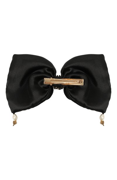 Двухслойный бант из текстиля украсили вышивкой и кантом из металлизированного бисера, и дополнили бахромой из воздушных перьев. Аксессуар крепится с помощью зажима из тонкого металла.