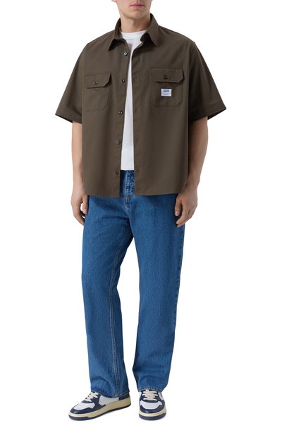 Слегка выбеленные джинсы станут основой повседневных образов разной сложности. Модель из жесткого денима украсили брендированным патчем на поясе сзади.
