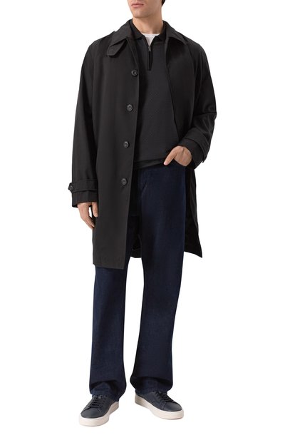 Толстовку с высоким воротом и карманом «кенгуру» украсили светоотражающим логотипом спереди. Модель из хлопкового футера, укрепленного полиэстером, и карман на рукаве застегиваются молниями.