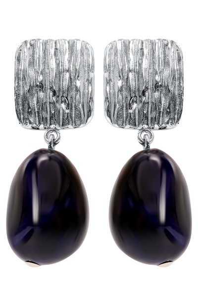 Серьги Misha с нарочито неровным узором дополнены асимметричными бусинами, изготовленными вручную из керамики оттенка Navy. Украшение с основой из серебра фиксируется застежками-пусетами.