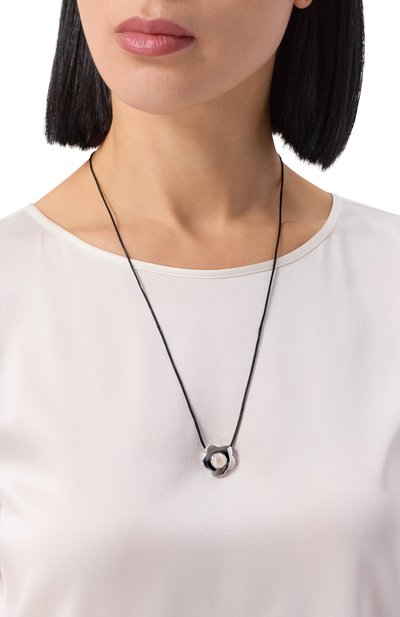 Подвеску Scientist на тонкой цепочке с карабином выполнили из ювелирного сплава, покрытого р одием. Фигурный крест декорировали фианитами.