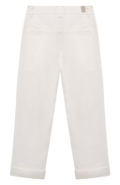 Брюки с б оковыми карманами и эластичным поясом выполнены из слегка эластичного хлопка, усиленного нейлоном. По линии отреза кокетки, украшенной металлическим брендированным сердцем, заложены мелкие складки.