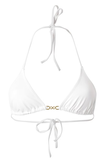 Бра Monza сшили из микрофибры с фактором защиты SPF 50+. Мягкие треугольные чашечки без подклада соединили цепочкой с круглыми и D-образными звеньями.