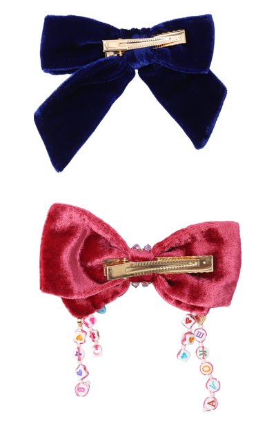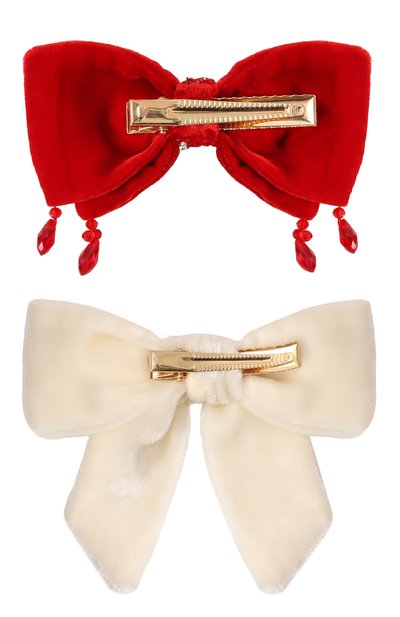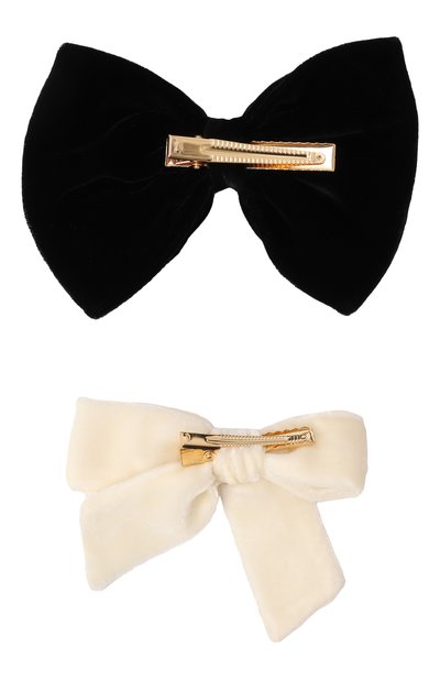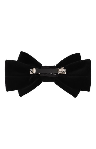 Двойной бант из шелковой ткани украсили золотистыми бусинами. Аксессуар фиксируется на волосах заколкой-автоматом с противоскользящей силиконовой накладкой.
