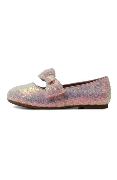 Балетки на гибкой нескользящей подошве выполнили из текстиля с цветочным и полосатым принтом. Модель застегивается ремешком велкро, декорированным атласной аппликацией в виде розы.