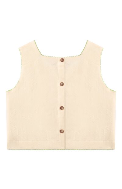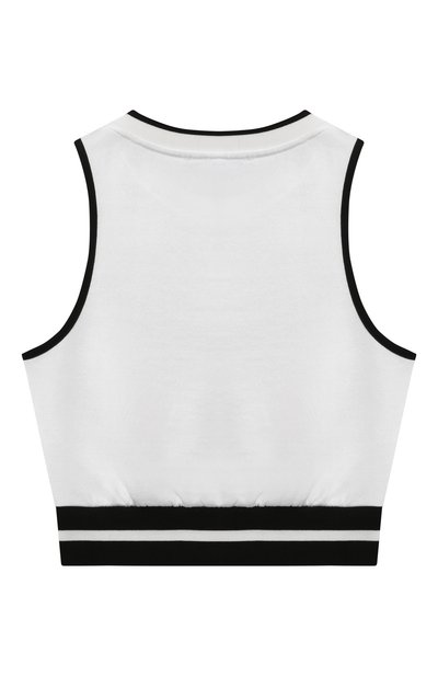 Укороченный топ из хлопкового трикотажа дополнили контрастной отделкой в рубчик. Модель с широкими бретелями украсили тремя фирменными золотистыми пуговицами Chain Lion спереди и брендированным патчем сзади.