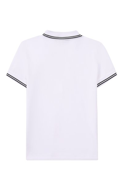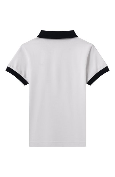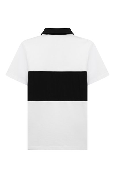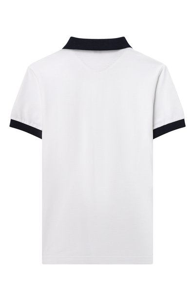 Поло из хлопкового джерси застегивается тремя пуговицами Chain Lion. Слева от планки разместили контрастный фирменный патч Balmain Couture. С ним перекликаются черные полосы на ребристых манжетах и воротник.