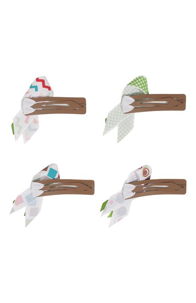 Заколку с металлическим зажимом, обтянутым лентой грогрен, украсили аппликацией в виде солнцезащитных очков в форме ананасов. Декор подчеркнули накладками с глиттером.