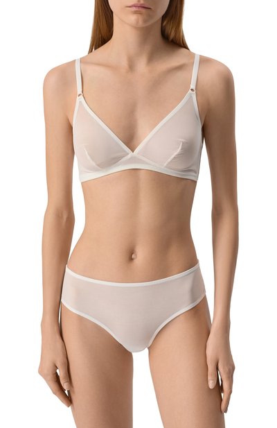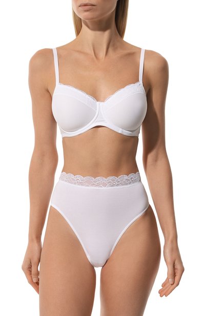 Слипы с высокой посадкой выполнили из матовой микрофибры. Для дополнительного комфорта модель с широкой полупрозрачной вставкой дополнили ластовицей.