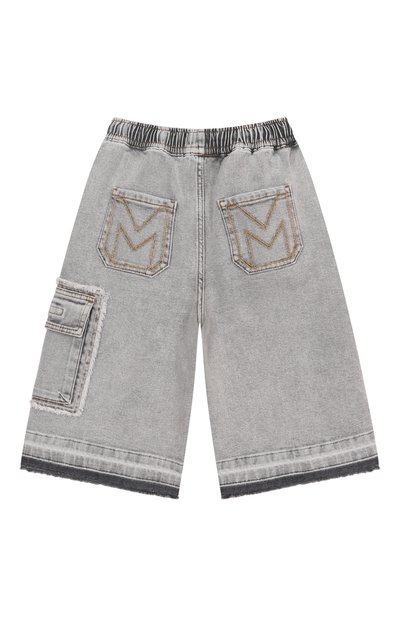 Шорты с пятью карманами украсили спереди брендированными принтами, напоминающими патчи. Модель с широким эластичным поясом сшили из хлопкового денима.