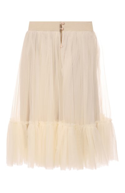 Для пошива юбки с эластичным поясом использовали рами, а для подкладки выбрали хлопок. Стыки между ярусами выделили кружевными вставками в тон.