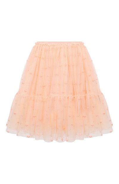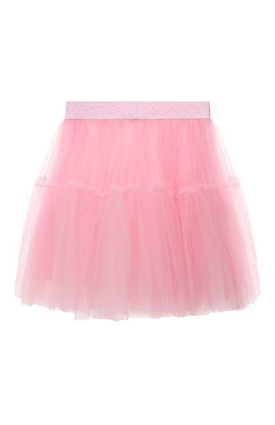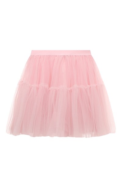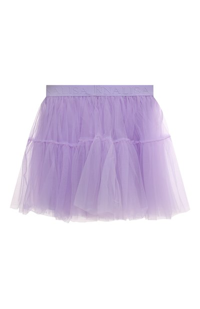 Расклешенную двухъярусную юбку с подкладкой из хлопкового муслина выполнили из тюля. Принадлежность марке обозначили жаккардовым логотипом на эластичном поясе.