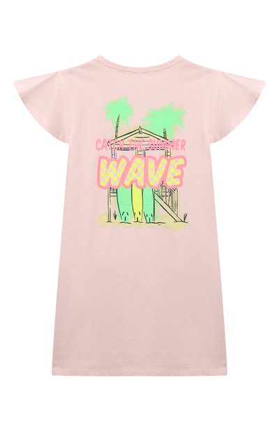 Платье-футболка прямого кроя сшито из гладкого джерси на основе полиэстера и хлопка. Короткие рукава отделаны бахромой. Эластичная модель украшена спереди надписью Love с пайетками.
