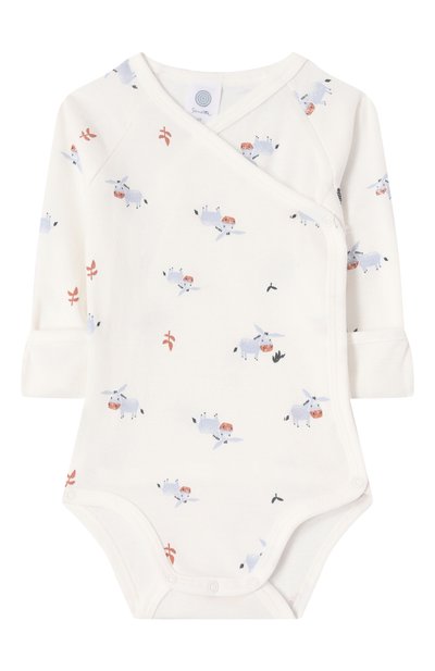 Трикотажное боди с принтом Esel выполнили из органического хлопка, сертифицированного по стандарту OEKO-TEX® Standard 100. Модель с рукавами реглан застегивается плоскими кнопками вдоль бокового и шагового швов.