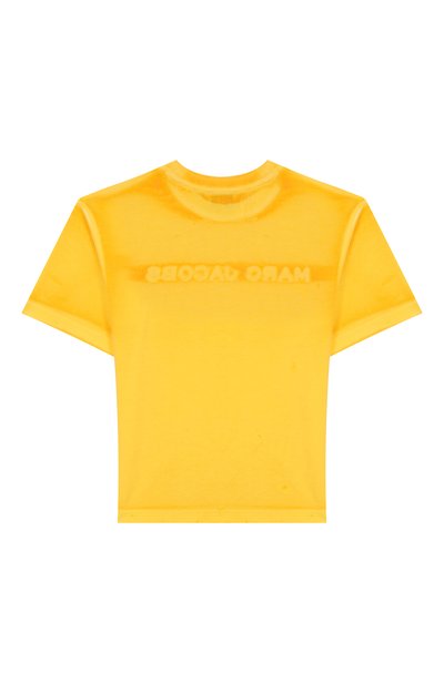 Футболку с круглой горловиной и вытачками на плечах украсили монохромным принтом Fruits Stickers. Свободную модель сшили из хлопкового трикотажа.