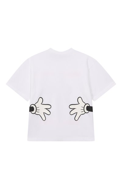 Футболка из хлопкового джерси вошла в капсульную коллекцию, созданную совместно с командой Disney. Модель украсили крупным изображением Микки Мауса спереди и принтом с логотипами обеих марок на спинке.