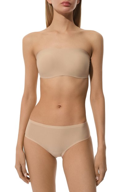 Бра-топ с плотными чашками выполнили из гладкой микрофибры Soft Stretch, которая легко растягивается во всех направлениях. Бесшовная модель будет незаметна под облегающей одеждой.