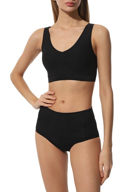 Бесшовные трусы из линии Pure Light украсили спереди логотипом марки в тон. Для изготовления модели с хлопковой ластовицей использовали эластичный нейлоновый трикотаж.