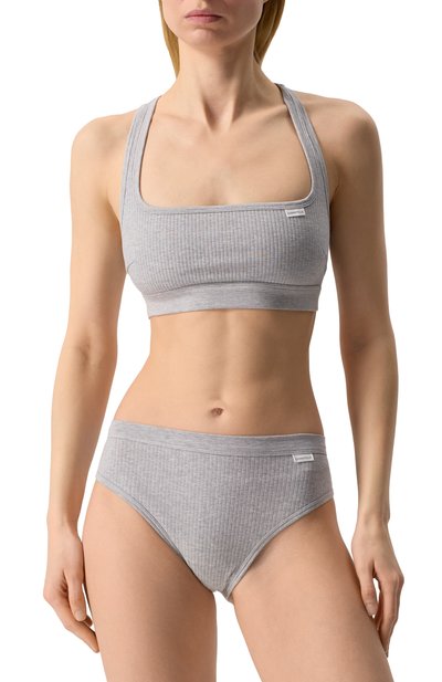 Бра-топ из коллекции Cotton Comfort выполнили из рифленого трикотажа на основе хлопка. Модель с широким поясом, квадратным вырезом и Х-образной спинкой украсили спереди этикеткой с логотипом.
