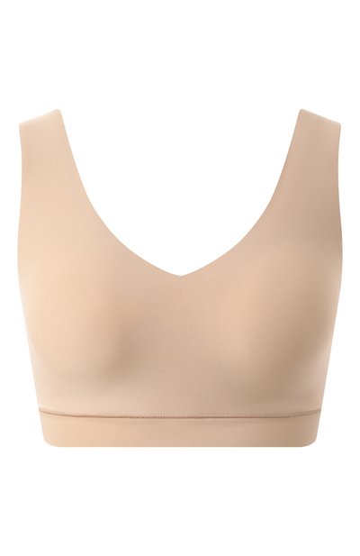 Бесшовный бра-топ без застежки, с глубокими V-образными вырезами спереди и сзади сшили из эластичной микрофибры. Модель из коллекции Soft Stretch дополнили плотными формованными вставками, обеспечивающими оптимальную поддержку груди.