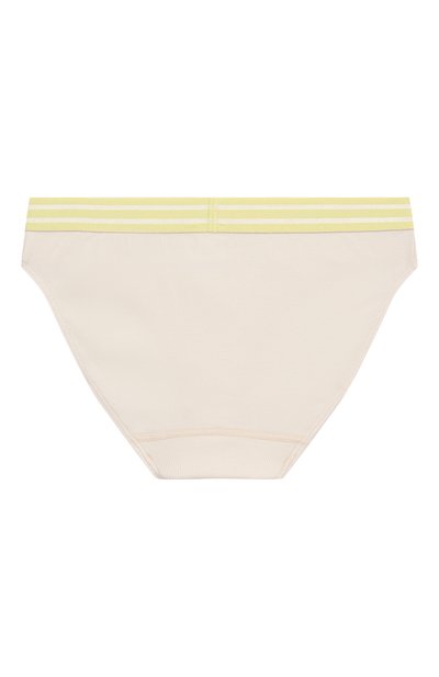 Трусы-слипы изготовили из рифленого трикотажа на основе хлопка, сертифицированного Oeko-Tex. Модель дополнили широким эластичным поясом в полоску.