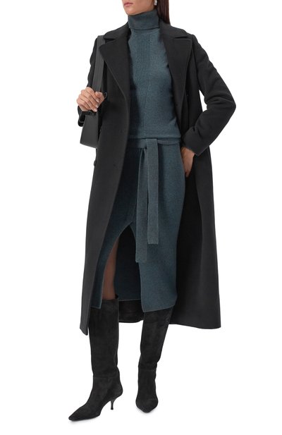 Расклешенную миди-юбку с контрастным поясом и драпировкой спереди, имитирующей запах, сшили из хлопкового трикотажа с добавлением полиэстера. Модель с карманами в боковых швах украсили сзади нашивкой с изображением Уробороса с полудрагоценным камнем в центре.