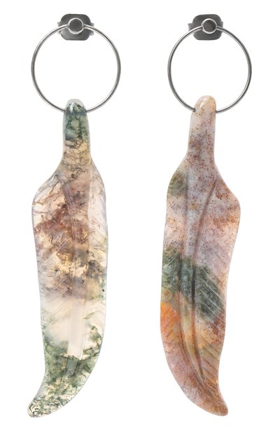 Серьги «Перо Кецаля» с застежкой-пусетой изготовлены вручную из черного серебра. Украшение дополнено крупными подвесками-перьями из агата с природным рисунком.