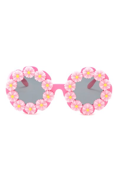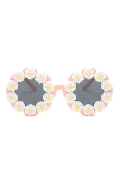 Круглые очки из легкого полимерного материала дополнили зеркальными линзами со степенью защиты от ультрафиолета UV 400. Модель украсили цветными стразами на рамках и логотипами на заушниках. В комплекте – прозрачный брендированный чехол с молнией и ручкой из шнура.