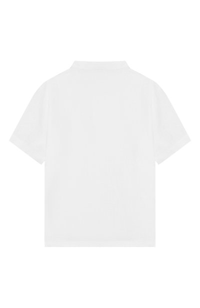 Для пошива меланжевой рубашки с закругленной линией низа использовали микс льна и хлопка. Модель дополнили нагрудным накладным карманом с вышитым логотипом марки.