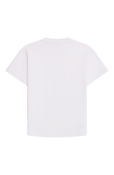 Футболку из гладкого хлопкового джерси дополнили мелкофактурными вставками на плечах, рукавах и внизу. Нагрудный карман украсили прорезиненным логотипом.