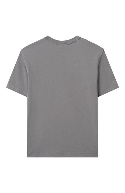Футболку с кантом вдоль круглой горловины выполнили из хлопкового трикотажа. Модель украсили логотипом спереди, словно объятым пламенем.