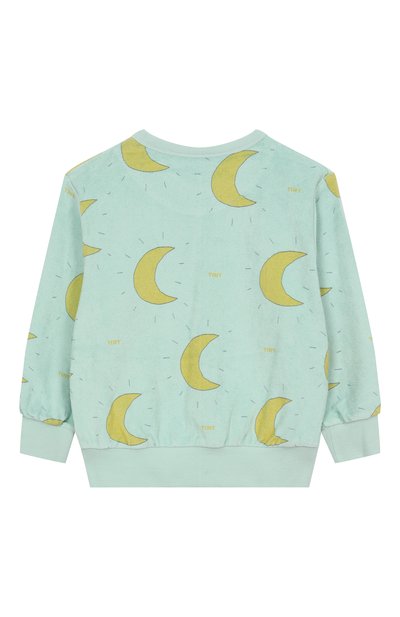 Свитшот с манжетами, поясом и круглой горловиной в рубчик сшили из органического хлопкового футера с добавлением эластана. Модель с паттерном Bows украсили фирменным ярлыком сбоку.