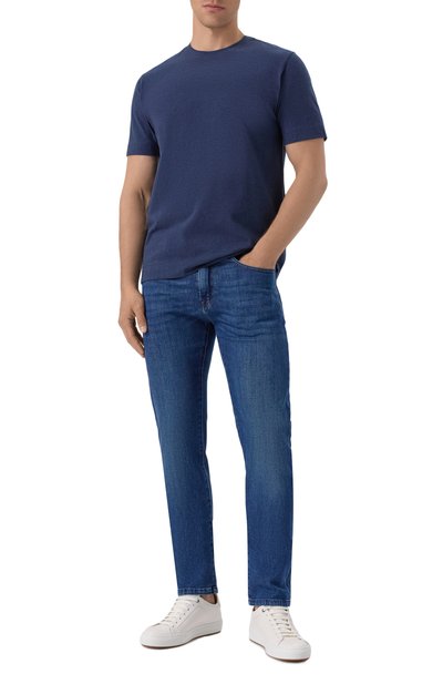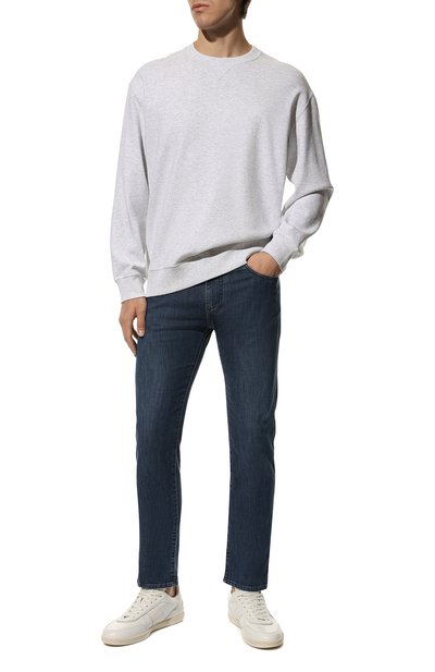 Джинсы Steve кро я Slim fit выполнили из хлопкового денима с добавлением полиэстера, вискозы и эластана. Пятикарманную модель дополнили патчем с фирменной эмблемой на поясе сзади.