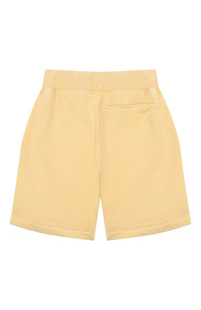 Шорты с широким поясом-кулиской сшиты из хлопкового трикотажа. Эластичная модель дополнена тремя врезными карманами и двумя карго, один из которых украшен логотипом марки.