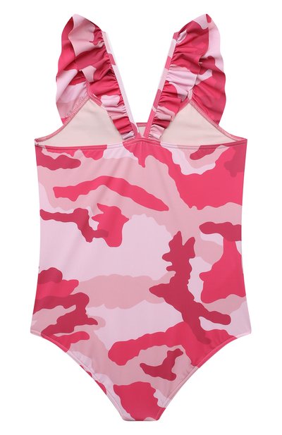 Слитный купальник выполнили из эластичной микрофибры с брендированным контрастным принтом Daisy. Сзади создали прямоугольную прорезь.