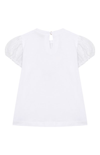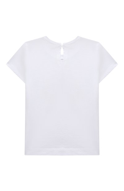 Футболка из хлопкового джерси украшена акварельным принтом в виде розы, дополненным небольшим логотипом бренда. Круглая горловина с каплевидным вырезом сзади застегивается на пуговицу.
