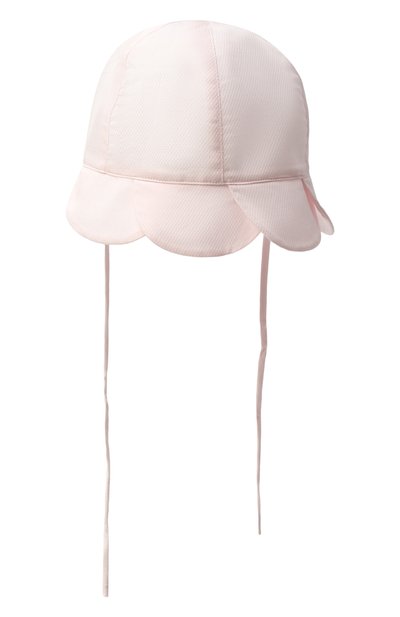 Панаму со стегаными полями сшили из хлопкового твила. Аксессуар украсили фирменной биркой и объемным бантом из сетки с люрексом.