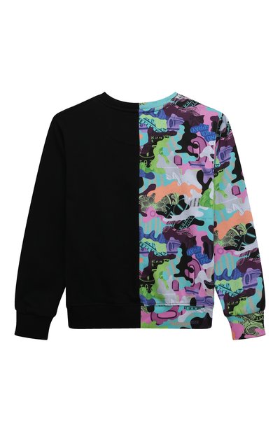 Для пошива свитшота использовали трикотаж из органического хлопка. Спереди модель украсили принтом Cats, напоминающим детский рисунок.