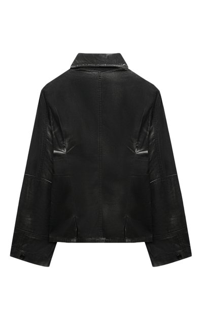 Джинсовую куртку с двумя накладными карманам и сшили из органического хлопка. Эластичную модель украсили яркой цветочной вышивкой. Манжеты и само изделие застегиваются пуговицами.