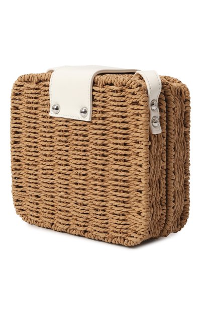 Сумка из бумажной соломки вошла в капсулу, созданную совместно с маркой Mifuko, которая работает с кенийскими ремесленниками по принципам fair trade. Имя мастерицы, вручную выполнившей аксессуар, указали на кожаном патче внутри. Модель дополнили брендированной ручкой из полиэстера и хлопка.