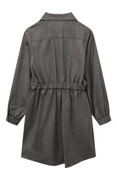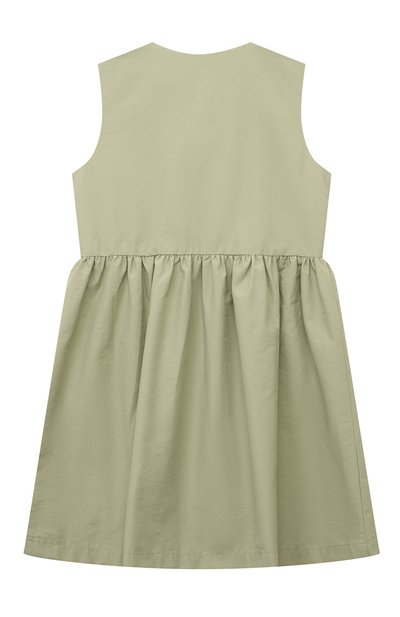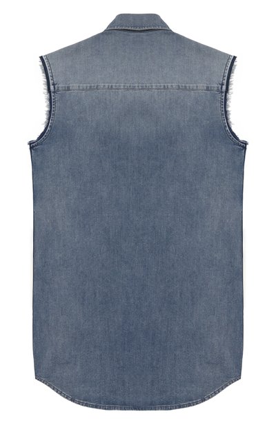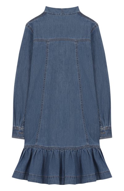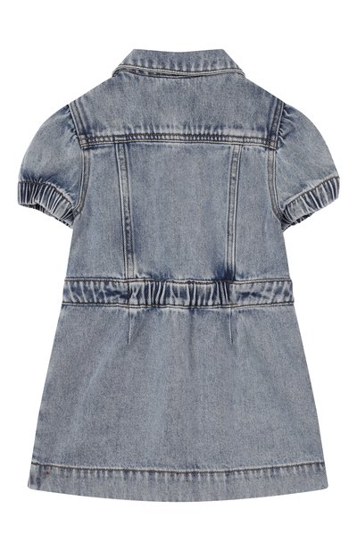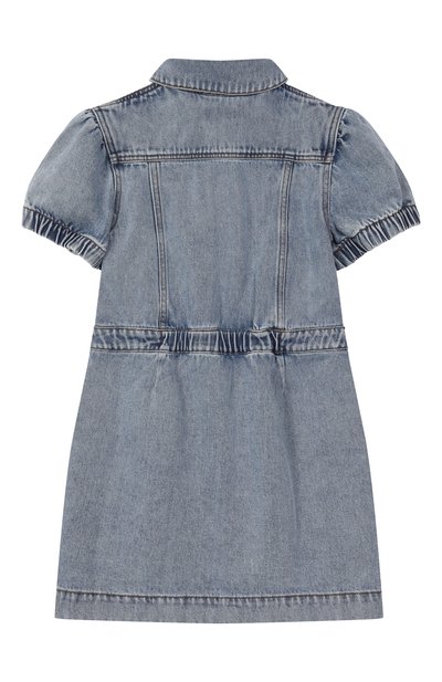 Джинсовое платье с супатной застежкой и эластичной вставкой на талии дополнили четырьмя накладными карманами с клапанами. Нагрудный карман и спинку украсили вышитыми логотипом и изображением тигра. Выбеленную модель с широкими рукавами сшили из стрейчевого денима.