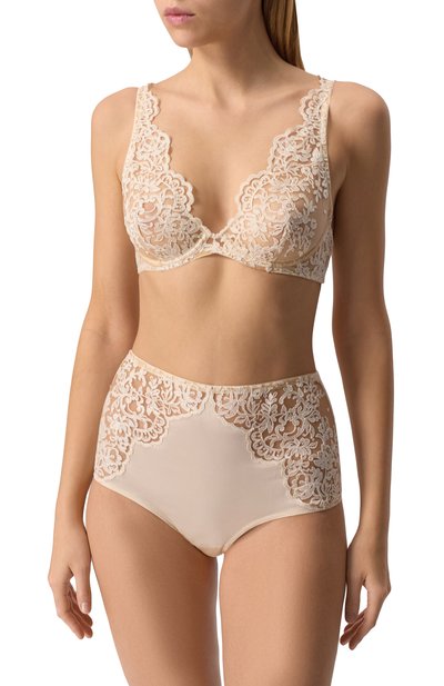 Трусы-слипы Cleo сшили из гладкого стрейчевого материала на основе полиамида. Модель с хлопковой ластовицей дополнили спереди и сзади вставками из полупрозрачного тюля с абстрактным вышитым узором в тон.