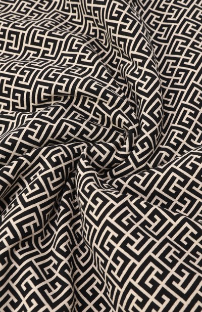 Квадратное одеяло выполнили из хлопкового трикотажа с жаккардовым мотивом PB Labyrinth. Края аксессуара с фирменной нашивкой укрепили узким контрастным кантом.