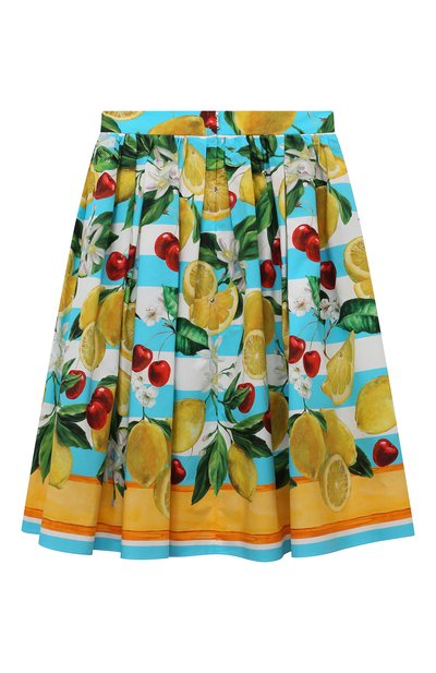Расклешенную юбку на подкладе сшили из микса хлопка и шелка с орнаментом пейсли. Такую же ткань выбрали для двух небольших воланов. Модель с эластичным поясом обходится без застежки.
